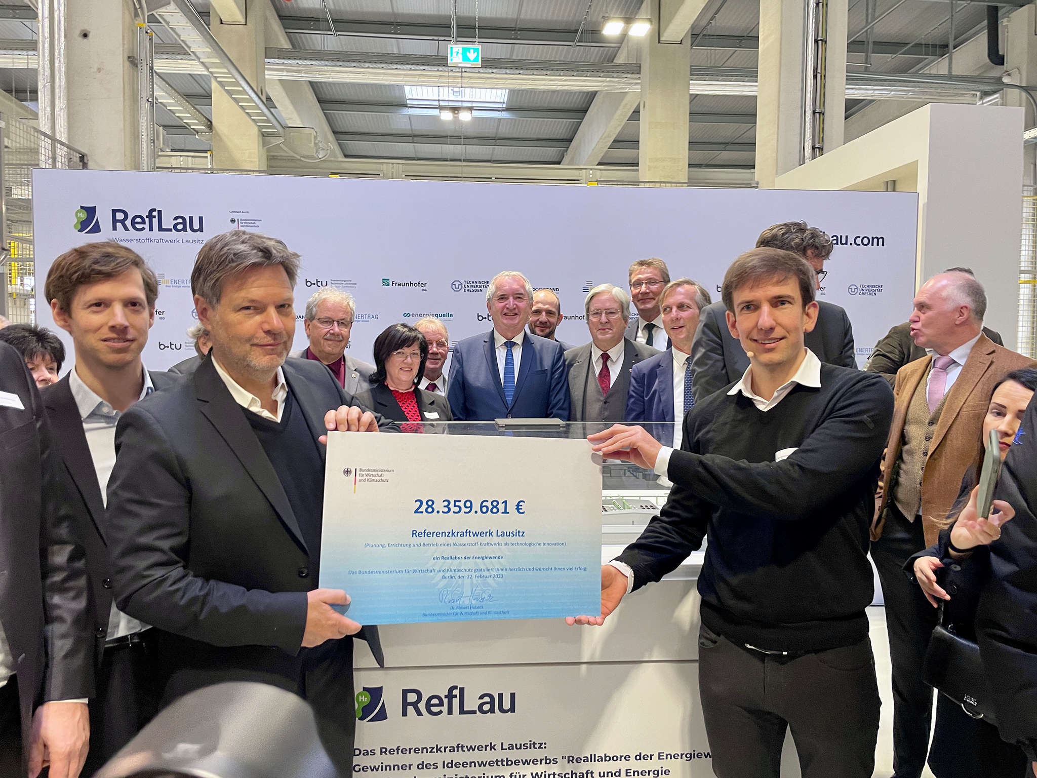 Das Projekt „Referenzkraftwerk Lausitz“ (RefLau) hatte sich 2019 beim bundesweiten Ideenwettbewerb „Reallabore der Energiewende“ des Bundeswirtschaftsministeriums durchgesetzt und eine Förderzusage erhalten. Strategisches Ziel ist es, die künftige Energieversorgung auf Basis erneuerbarer Energieträger und Wasserstoff einschließlich der Speicherung und Rückverstromung des Wasserstoffs am Industriestandort Schwarze Pumpe abzubilden. Abnahmepotenziale für Wasserstoff in der Region zu identifizieren, ist ein Ziel des RefLau. Bis zur Inbetriebnahme der Anlage im Ende 2025 sollen erste Kunden gesichert und Synergien bei der Etablierung einer Wasserstoffwirtschaft nutzbar gemacht werden. Standort: Industriepark Schwarze Pumpe Am Standort im Industriepark Schwarze Pumpe soll das neuartige Kraftwerkskonzept unter ausschließlicher Nutzung erneuerbarer Energien, wie Wind- und Sonnenkraft, die Möglichkeiten der Sektorenkopplung aufzeigen. Durch die Erzeugung von grünem Wasserstoff wird die Nutzung von erneuerbar erzeugter Energie in den Sektoren Verkehr, Industrie und Wärme ermöglicht und damit ein wichtiger Schritt zur Reduzierung der Abhängigkeit von fossilen Energieträgern gegangen. Durch den Forschungspart kann das RefLau neben Wasserstoff und Wärme auch alle Systemdienstleistungen, wie Primär- und Sekundärregelenergie, eines konventionellen Kraftwerkes bereitstellen. Zudem wird das Projekt der Partner Energiequelle, ENERTRAG und dem Zweckverband Industriepark Schwarze Pumpe neue Wertschöpfungspotenziale für die Region erschließen. Es soll als Referenz für die Umstellung von konventionellen Kraftwerksstandorten auf erneuerbare Energieerzeugung dienen. Die Skalierung des Projekts am Standort in der Lausitz ist geplant. Das Projekt wird von der ASG Spremberg, der Wirtschaftsförderung von Spremberg und Spreetal, unterstützt. (Foto: Tudyka:PR)